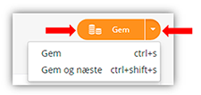Når man er færdig med den enkelte medarbejder, trykkes på ”Gem” eller genvejstasterne ”Ctrl + S”, her bliver man stående på medarbejderen. Man kan også trykke på den lille pil ved ”GEM Knappen” og vælge gem og næste eller genvejstasterne ”ctrl+shift+s”, så kommer man videre til næste medarbejder.