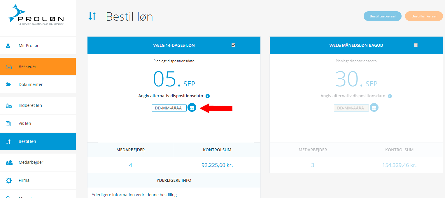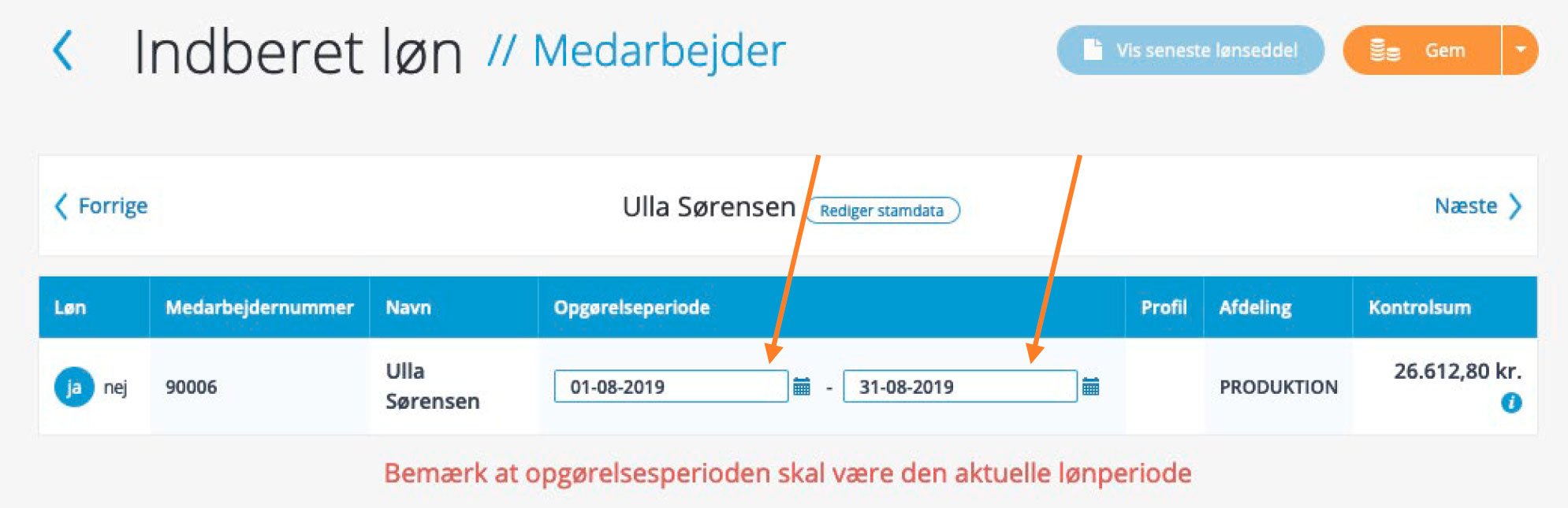 HUSK: Når lønnen er indberettet, skal der foretages en bestilling. Her tjekkes/ indtastes den aktuelle lønperiode.