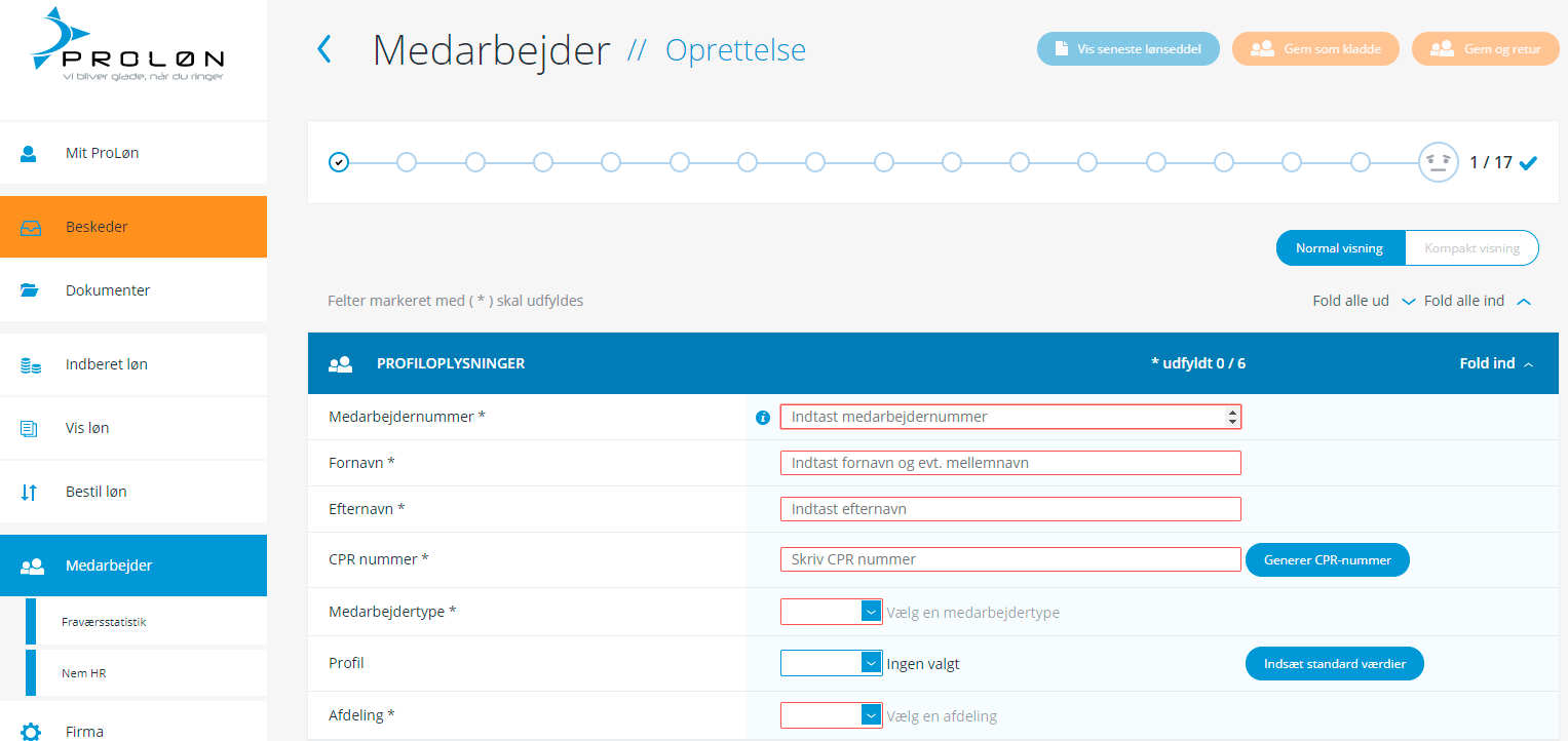 Hvis der er et ” flueben ” under krævet, bliver medarbejderen oprettet under indlæsning.