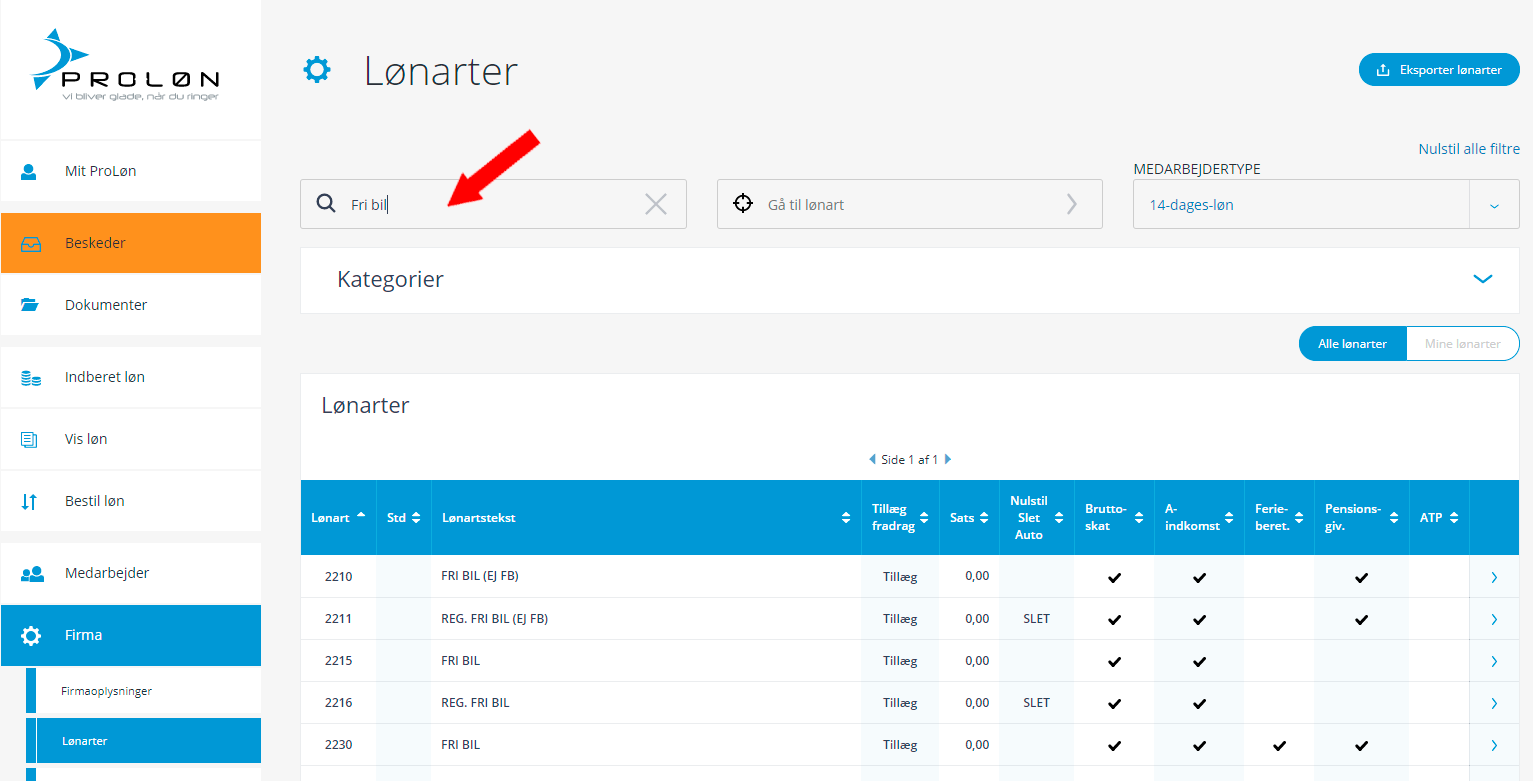 Man kan nemt finde en lønart ved at anvende søgefeltet, hvor man både kan søge på tekst eller på et nummer, hvis man kender hele eller dele af lønartsnummeret. Hvis man fx skal bruge en lønart til fri bil, kan man bare skrive ”fri bil” i søgefeltet.