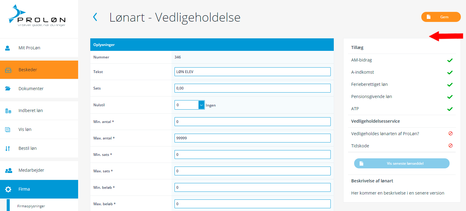 Der er mulighed for at ændre tekst, sats og om lønarten skal nulstilles/slettes. Derudover er der også mulighed for at indlægge intervaller på hvilke tal, der må indtastes på den enkelte lønart.