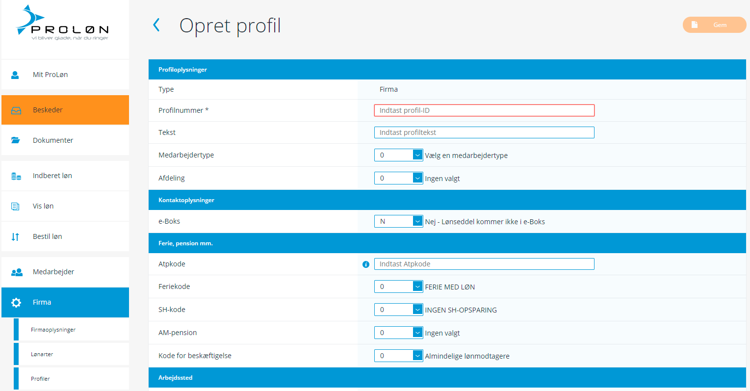 Profiler kan benyttes i forbindelse med oprettelse af en ny medarbejder, hvor man kan sætte standardkoder til f.eks. feriekode, atp, statistik osv.