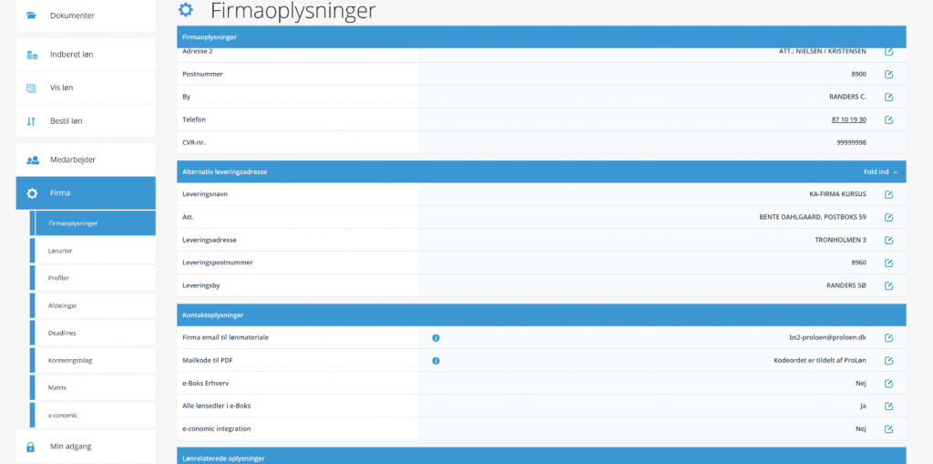 Ved klik på ”Profil” på den enkelte linje ved firma, kan man se og vedligeholde en profil, med de koder beskrivelse og lønarter, man har brug for.