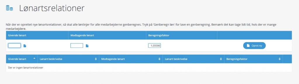 Derudover kan man oprette et antal lønarter, der skal danne løntransaktioner for den nyoprettede medarbejder eller tilføjes på en allerede oprettet medarbejder i løntransaktioner.