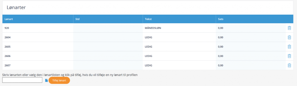 Ønsker man at slette en lønart, gøres dette ved at trykke på ”skraldespanden”, og linjen bliver slettet helt, når man gemmer.