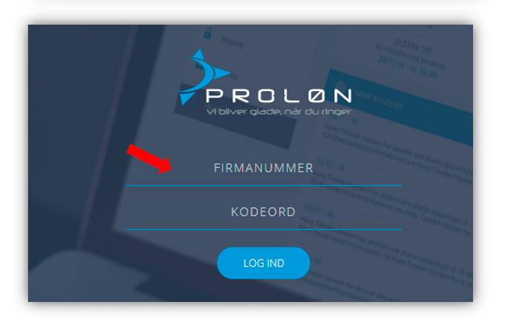 Tast nu virksomhedens firmanummer og kodeord. Klik på * Log ind*
